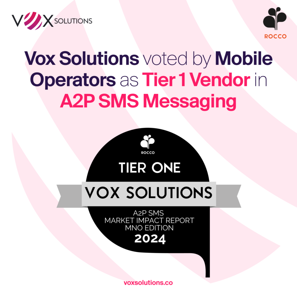 This acknowledgment is the outcome of 216 Mobile Network Operators’ input who provided their perspectives on critical aspects of A2P SMS, resulting in Vox Solutions being recognized as Tier 1 out of 48 rated vendors.