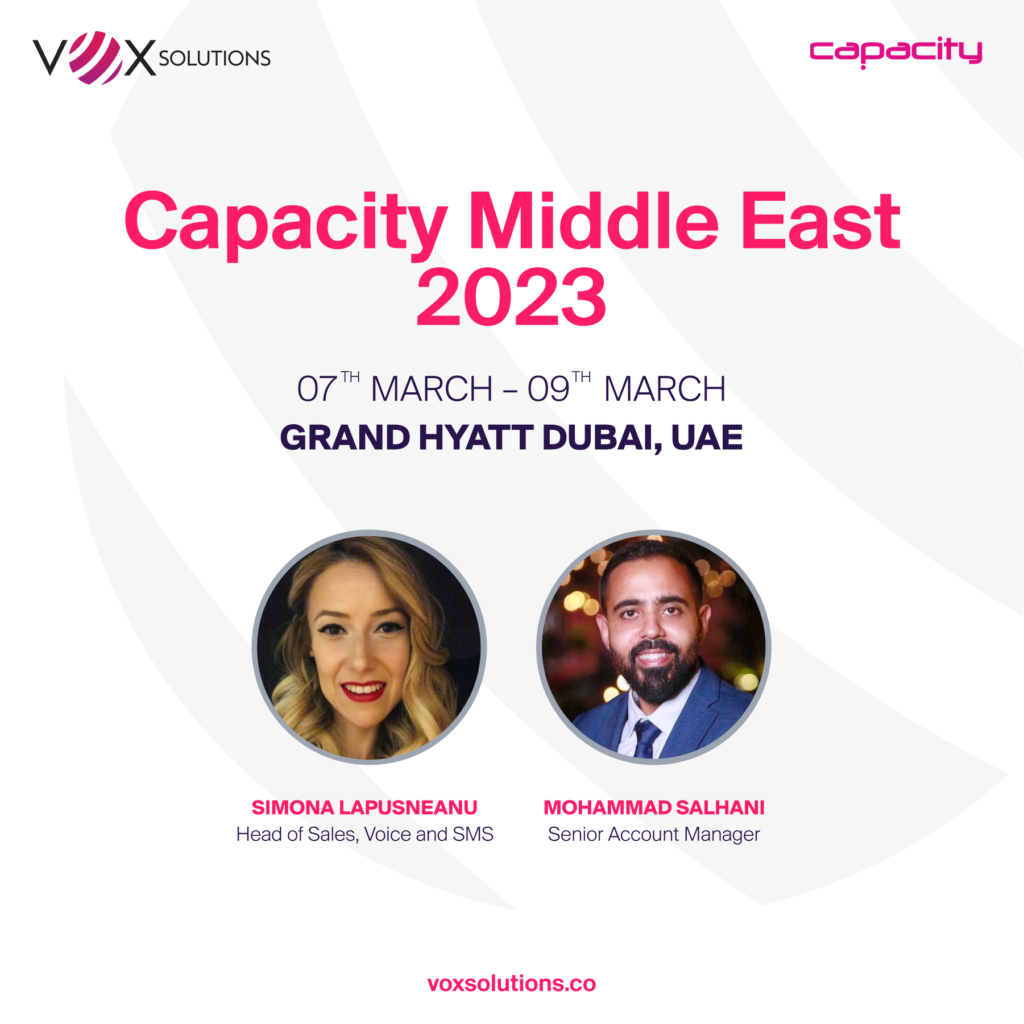 Nos complace anunciar que VOX SOLUTIONS asistirá al evento Capacity Middle East en Dubai.