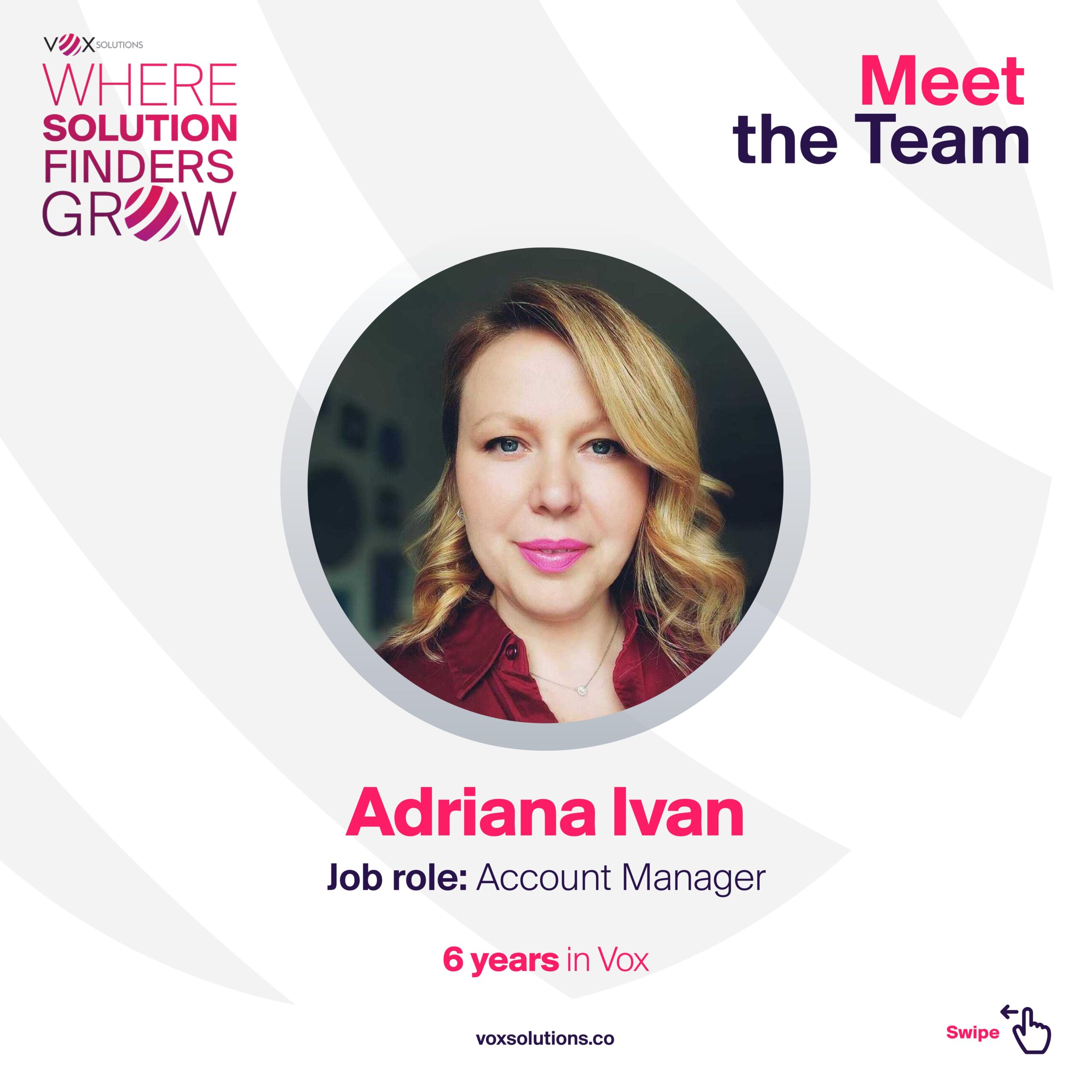 Where Solution Finders Grow. Meet our team! Vox Solutions would like to highlight our Account Manager – Adriana Ivan. […]