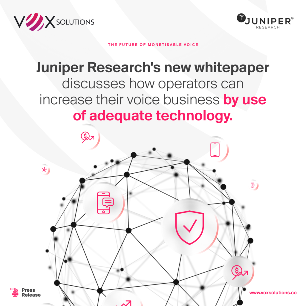 Hong Kong SAR, January 2023 – Juniper Research and Vox Solutions, a leader in monetization solutions for mobile voice & messaging, have partnered to release a new white paper entitled “The Future of Monetisable Voice”. The paper, authored by Juniper Research, starts by forecasting that the total mobile voice market revenue is to decline from US$240 billion in 2022 to US$200 billion by the end of 2026.