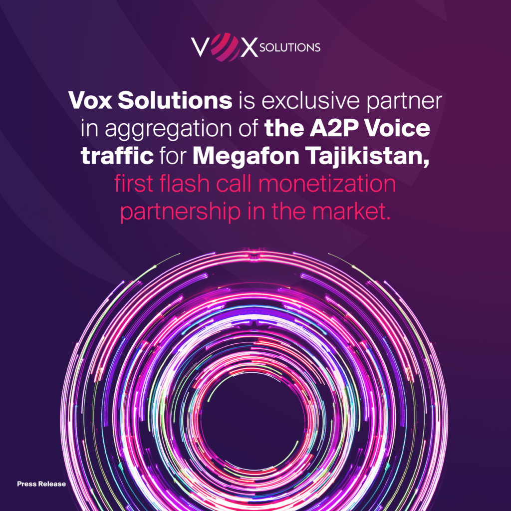 HONG KONG, Nov. 29, 2022 – MegaFon Tajikistan (TT Mobile CJSC), the first operator of new digital opportunities and leading mobile telecom operator in Tajikistan, has signed an exclusive partnership with Vox Solutions to help identify Application to Person (A2P) voice (Flash Call) traffic and combat fraudulent routing and illicit bypass attempts, using VOX Solution’s VOX360 anti-fraud platform.